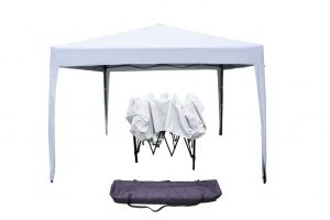 basso il prezzo, buona la qualità. Questo versatile gazebo può essere sfruttato per creare una confortevole zona d’ombra nel bel mezzo del giardino, ma è utile anche per gli amanti del campeggio o per svariati usi, come ad esempio mercatini e fiere. Il telaio pieghevole si monta con incredibile facilità e assicura una buona stabilità. Anche se non può essere paragonato, per quanto riguarda la resistenza al vento, ai modelli fissi prima descritti, possiamo tranquillamente affermare che fa bene il suo lavoro in condizioni atmosferiche normali. Il telaio in acciaio è verniciato con prodotti resistenti agli agenti atmosferici, mentre il telo di copertura bianco perla assicura un’ottima protezione dai raggi UV. Dimensioni: 3x3m. Prezzo: 49,84 euro.